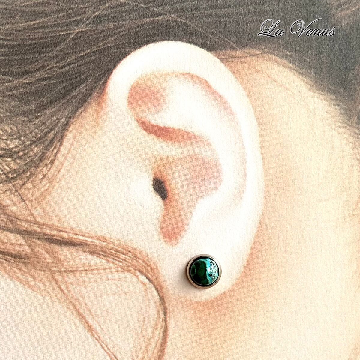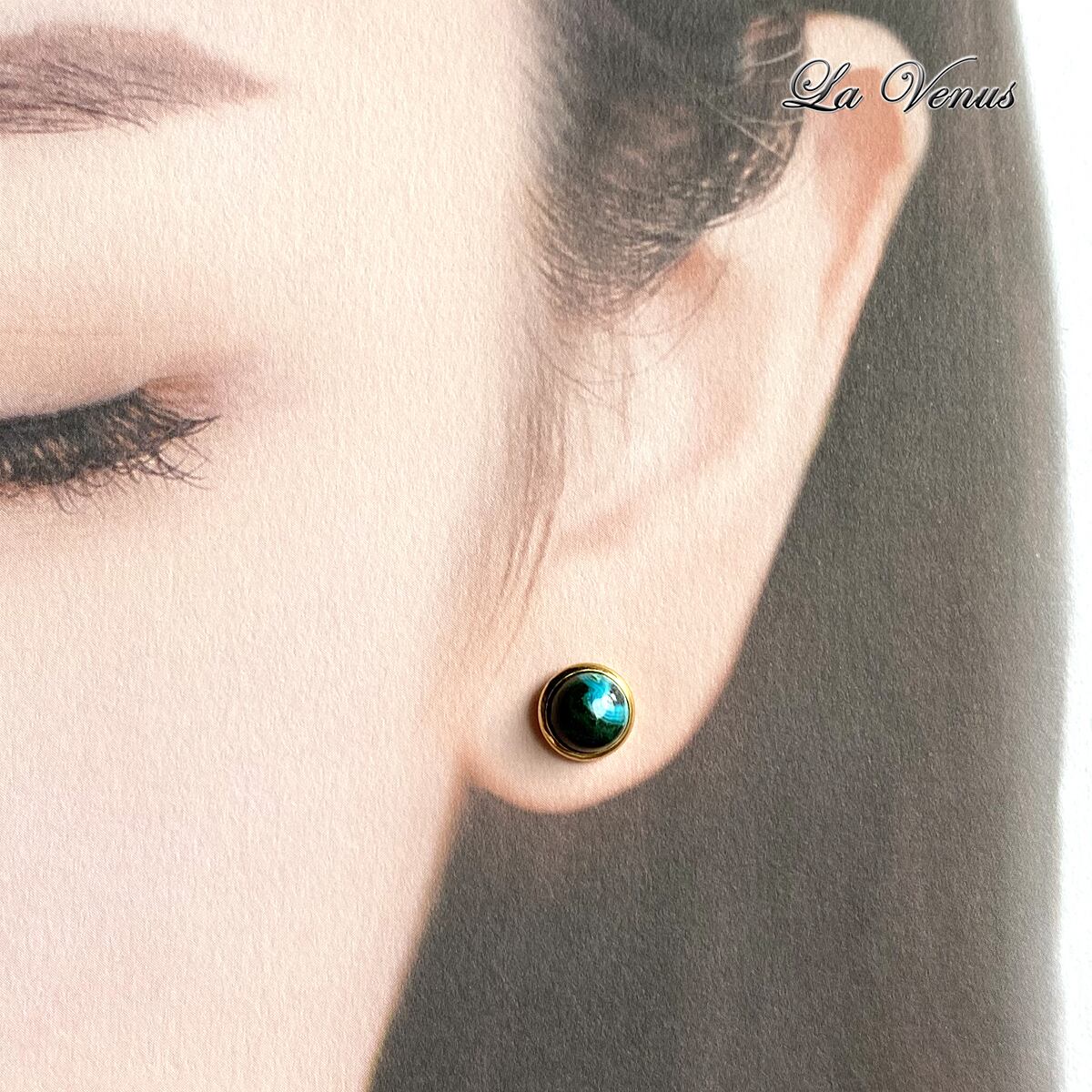 ✴︎希少石✴︎ つけっぱなしOK アフリカ産 クリソコラマラカイト ベゼルピアス 大粒6mm SUS316 サージカルステンレス 台座 両耳用 ペア 金属アレルギー対策 覆輪 ゴールド シルバー