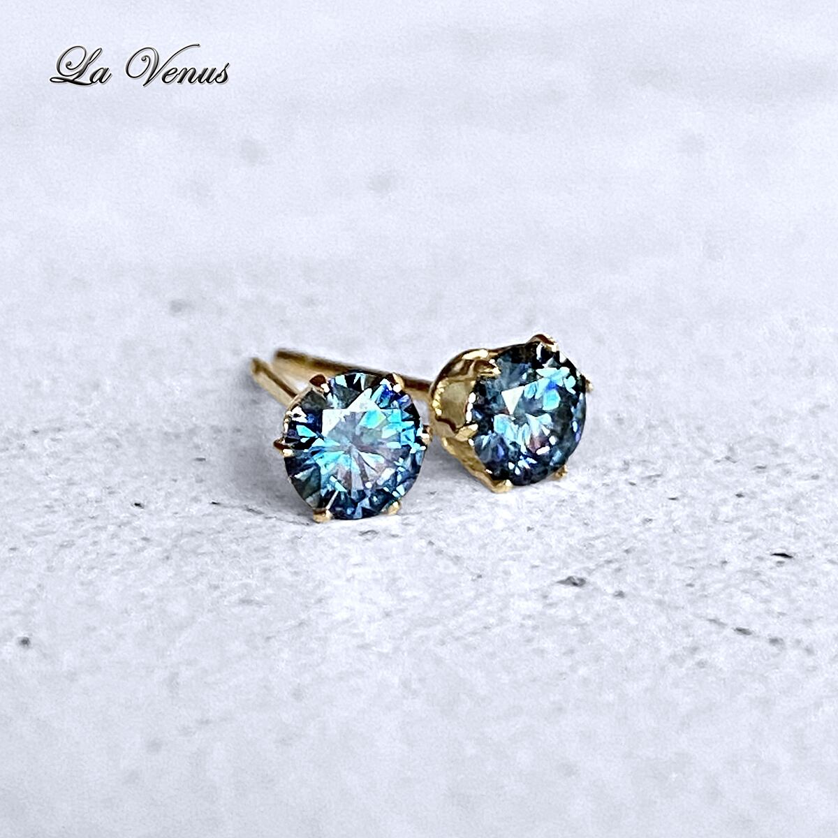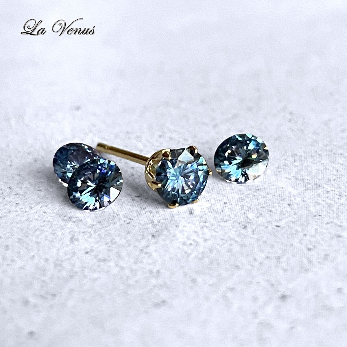 ✴︎深海のブルー✴︎ つけっぱなしOK 奇跡の宝石 ブルー モアサナイト 一粒 ピアス 4mm 宝石質 AAA 316 サージカルステンレス 片耳用 金属アレルギー対策 スタッド【14KGF 変更可】