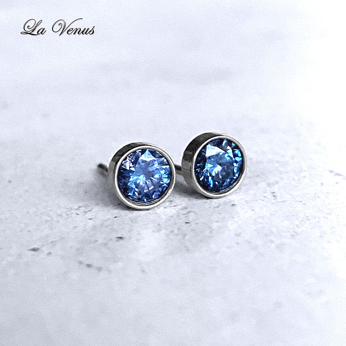 ✴︎深海のブルー✴︎ つけっぱなしOK 奇跡の宝石 ブルー モアサナイト 一粒 ベゼルピアス 4mm 宝石質 AAA 316 サージカルステンレス 両耳用 金属アレルギー対策【イヤリング変更可】