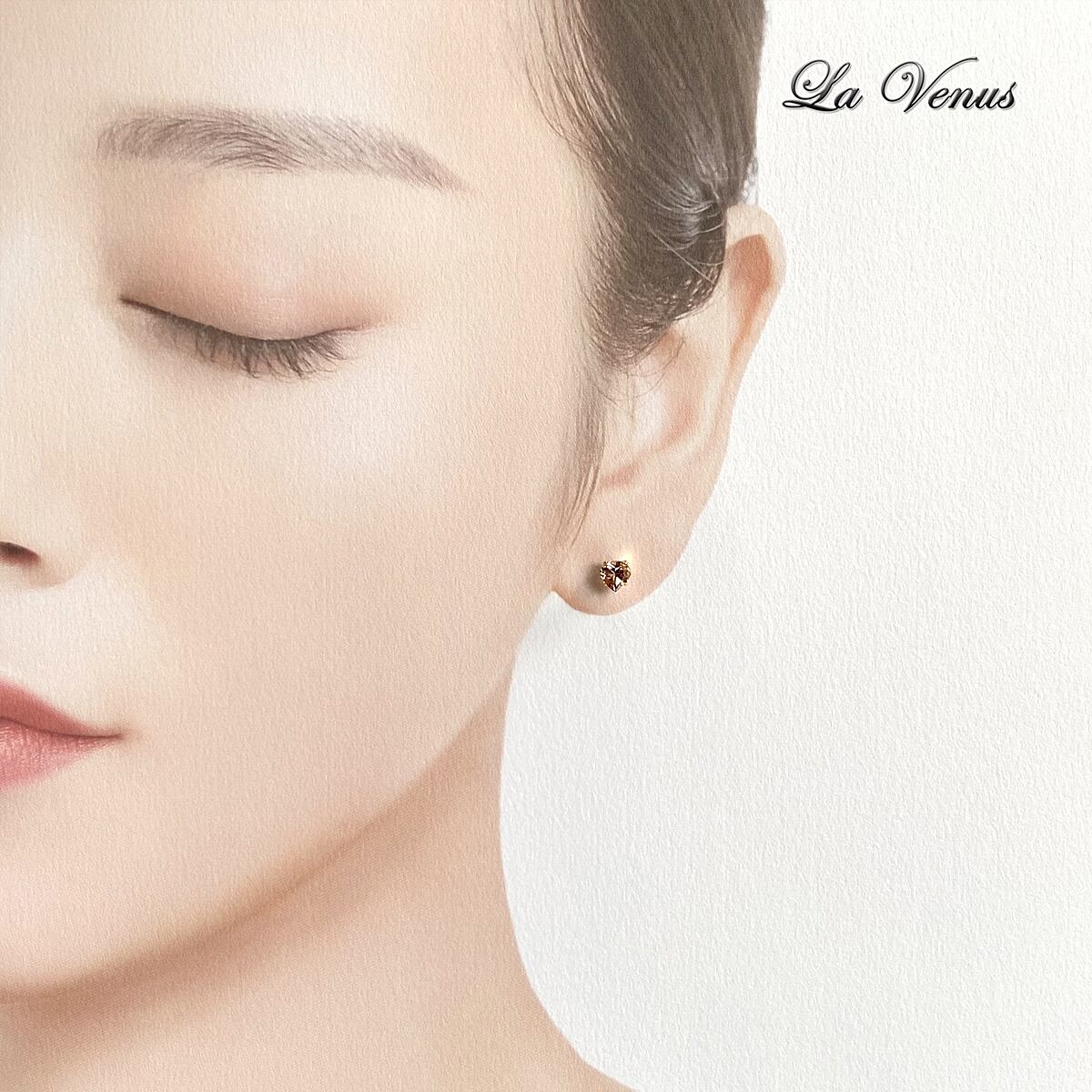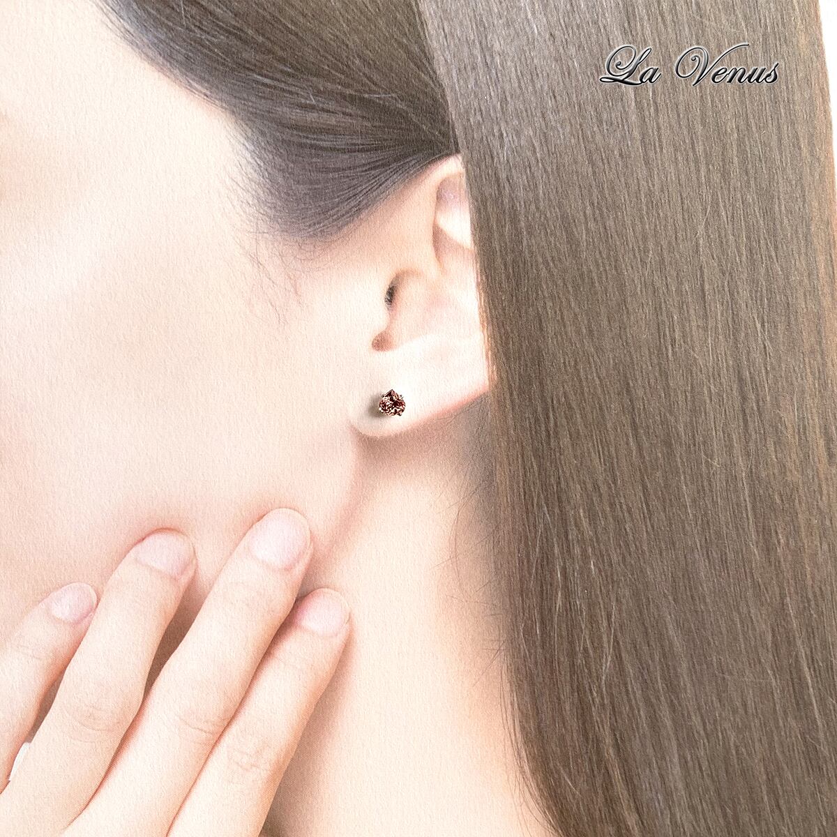 サクラピンクのトルマリンは、ほんのりシャンパンゴールドを含んだ温かみのある色合いで、肌に自然になじみます。