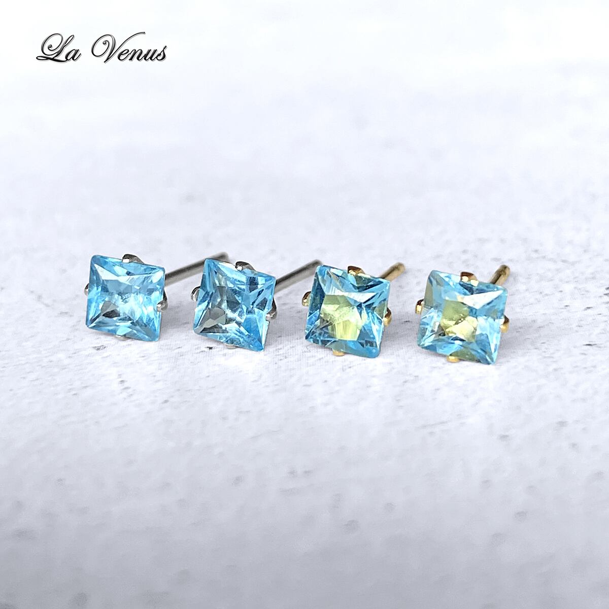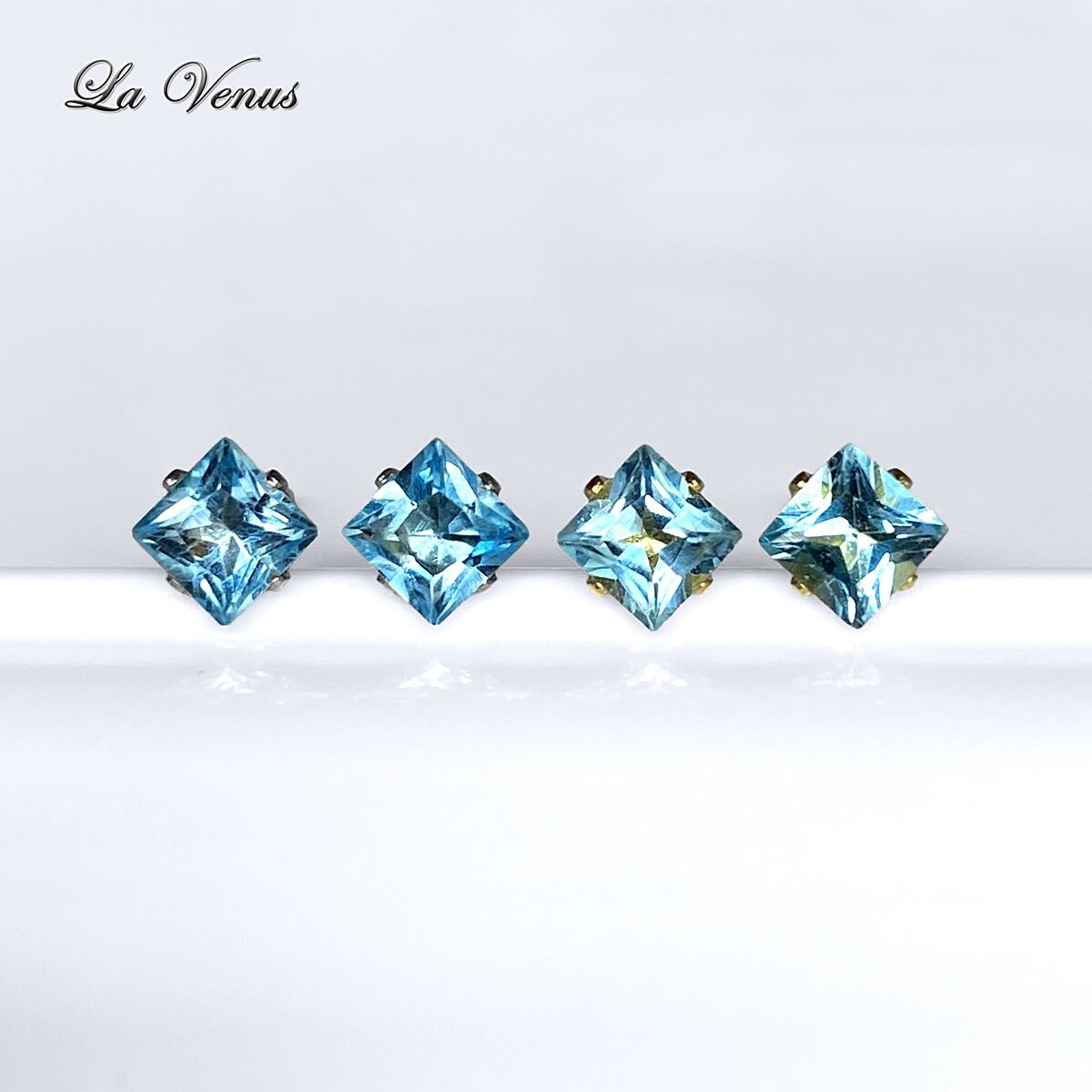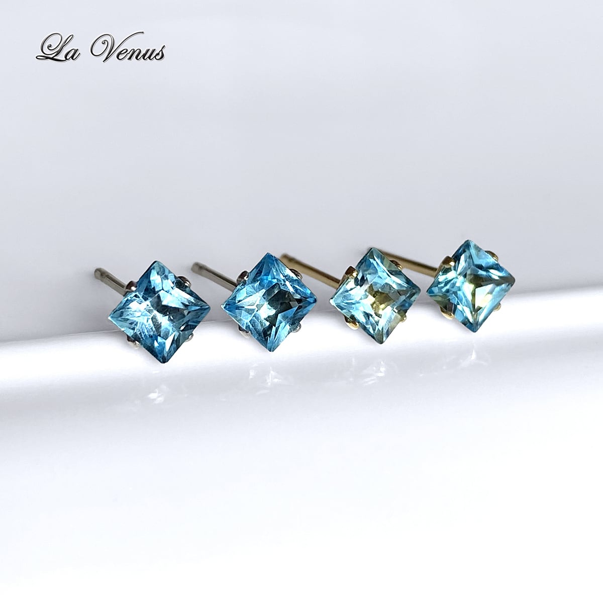 ✴︎つけっぱなしOK✴︎ ブラジル産 天然 スイスブルートパーズ 宝石質 AAA 一粒 プリンセスカット ピアス 4mm 316 両耳用 スタッド 11月誕生石【14KGF 変更可】