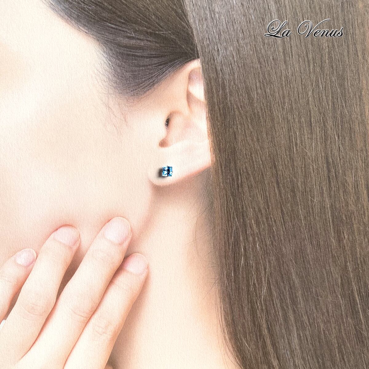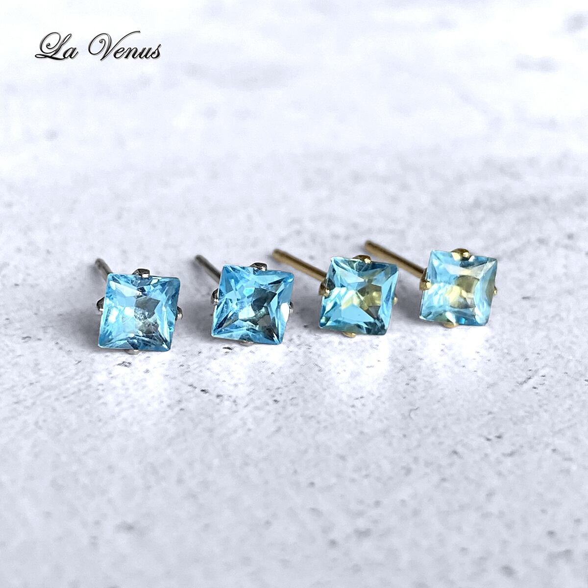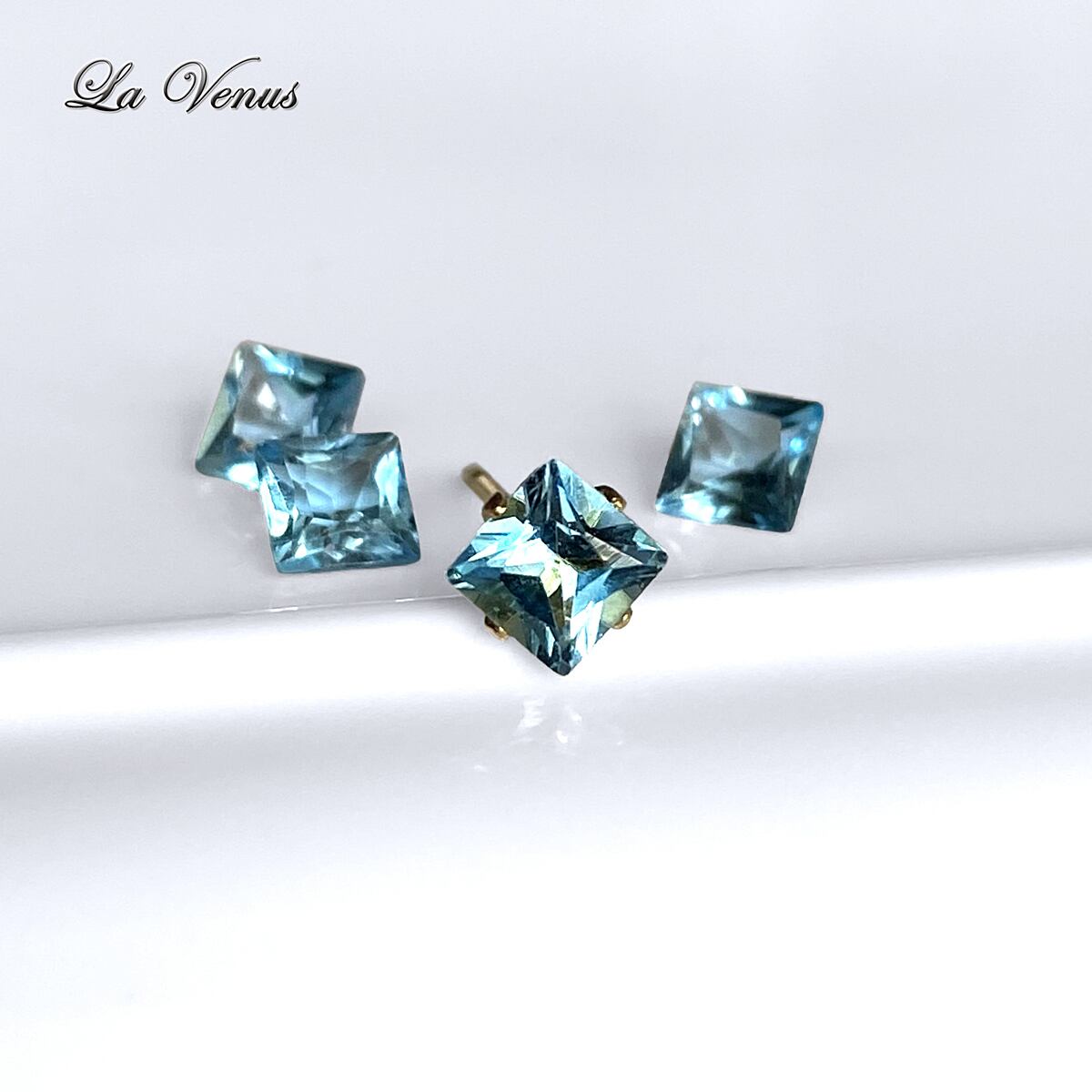 ✴︎つけっぱなしOK✴︎ ブラジル産 天然 スイスブルートパーズ 宝石質 AAA 一粒 プリンセスカット ピアス 4mm 316 両耳用 スタッド 11月誕生石【14KGF 変更可】
