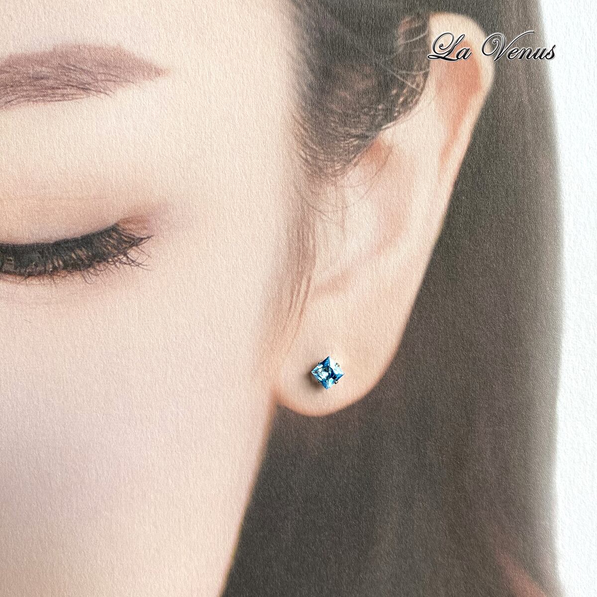 ✴︎つけっぱなしOK✴︎ ブラジル産 天然 スイスブルートパーズ 宝石質 AAA 一粒 プリンセスカット ピアス 4mm 316 片耳用 スタッド 11月誕生石【14KGF 変更可】