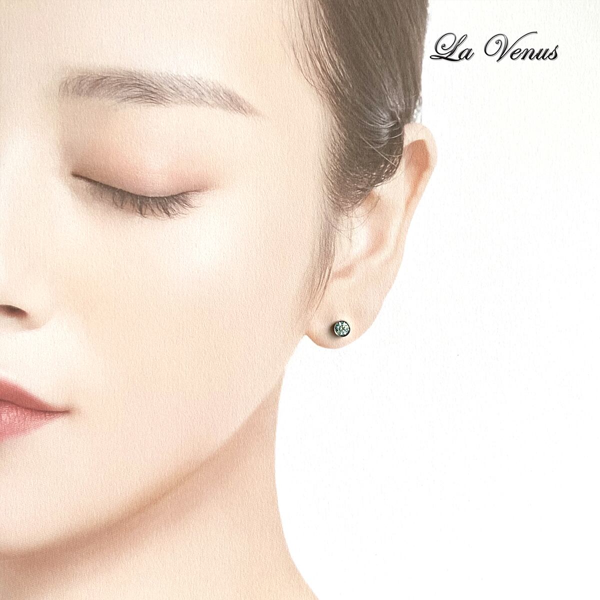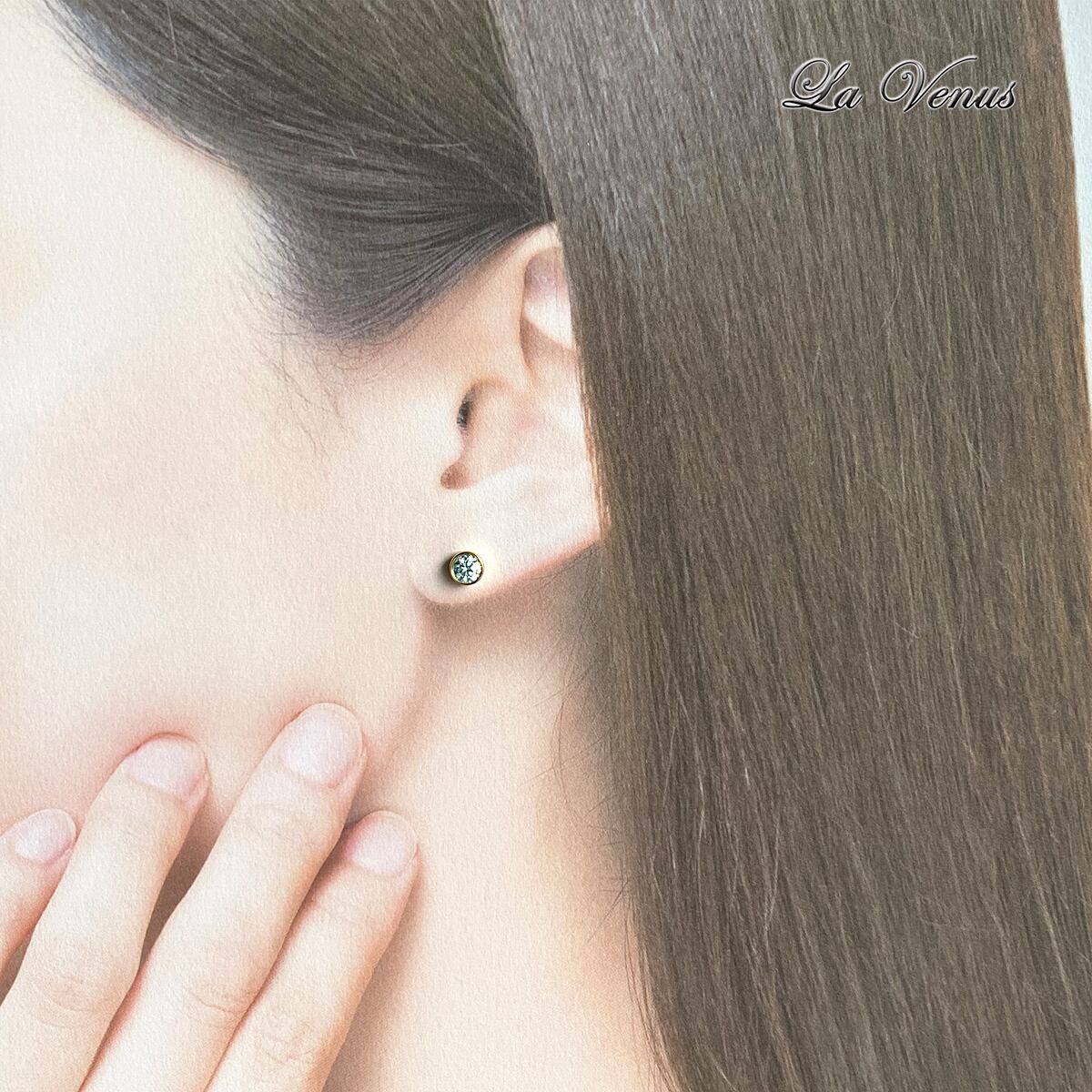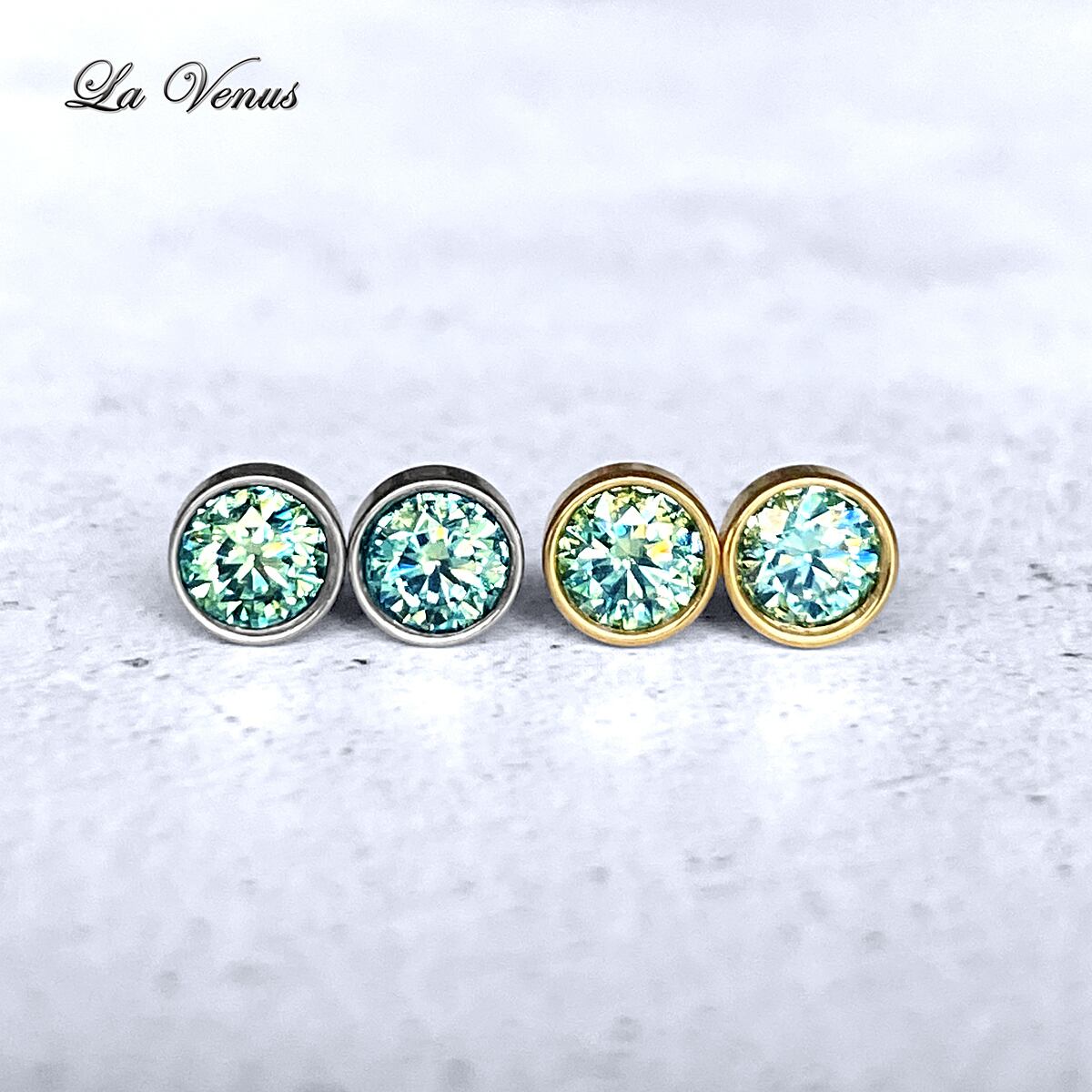 ✴︎人魚の碧い涙✴︎ つけっぱなしOK 奇跡の宝石 ブルーグリーン モアサナイト 一粒 ベゼルピアス 4mm 宝石質AAA 316 サージカルステンレス 両耳用 金属アレルギー対策【イヤリング変更可】