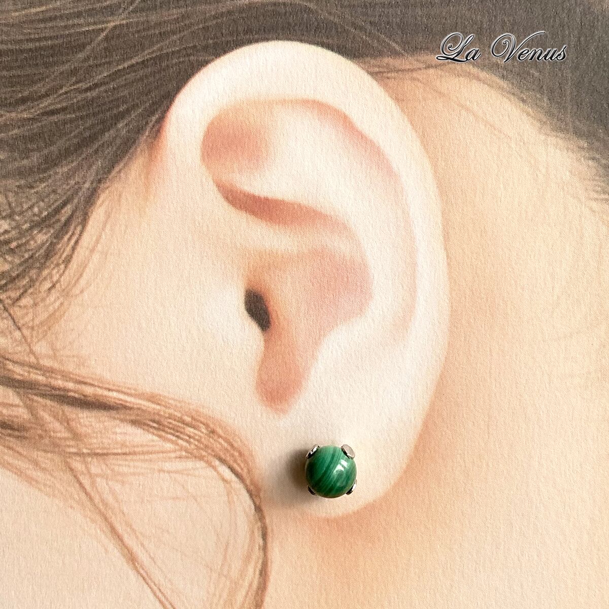 ✴︎深い森の記憶✴︎ つけっぱなしOK 天然 マラカイト 丸玉ピアス 大粒 6mm 316 サージカルステンレス 立て爪 パール台座 金属アレルギー対応 両耳用 ペア