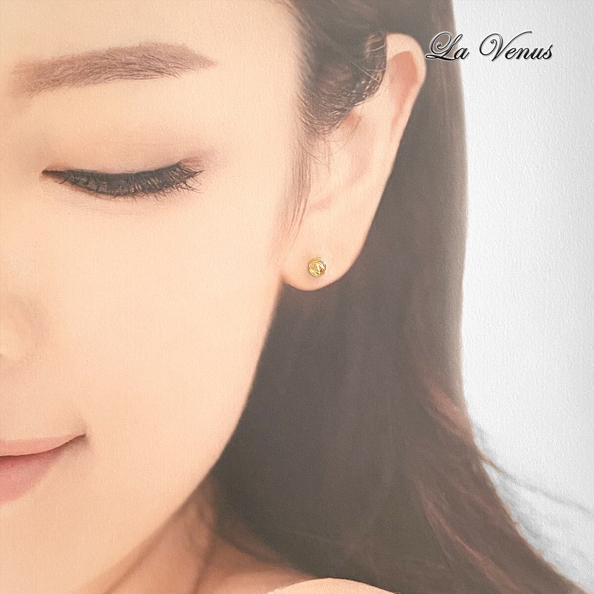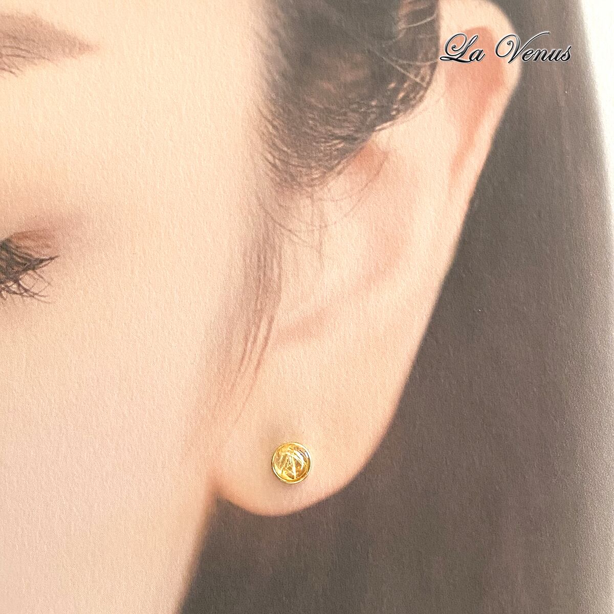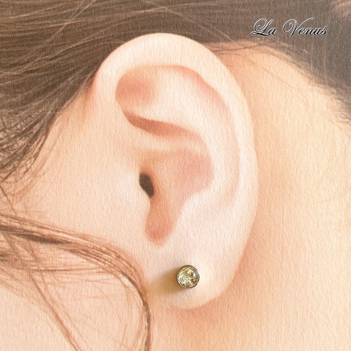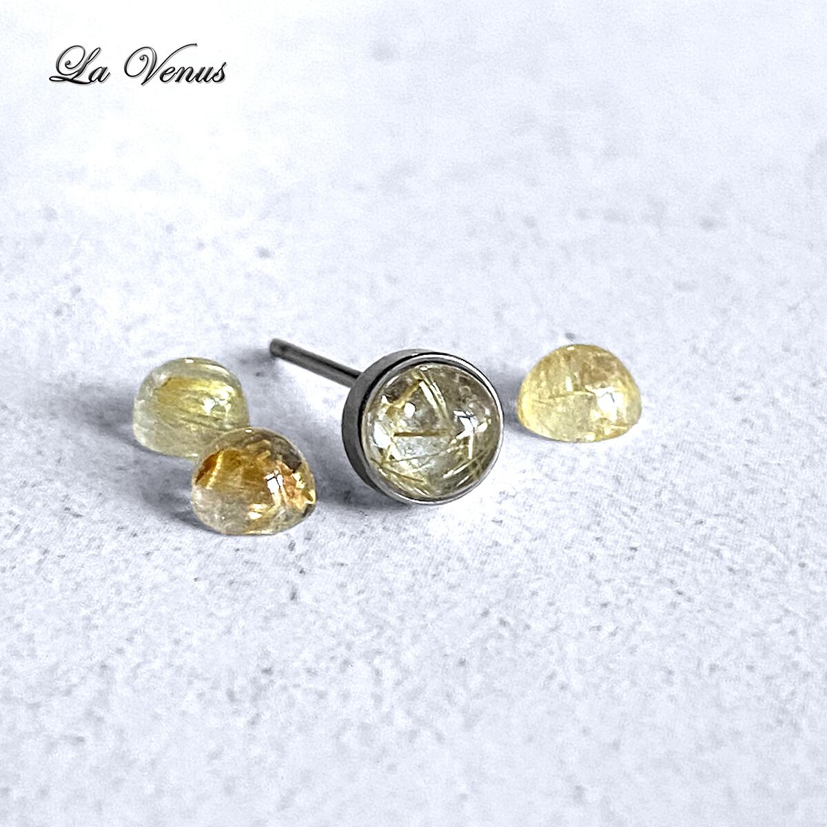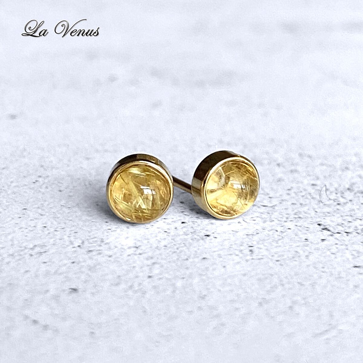 ✴︎つけっぱなしOK✴︎ 天然 ゴールドルチルクォーツ 一粒 ベゼルピアス 4mm 316 サージカルステンレス 金属アレルギー対応 両耳用 ペア イヤリング変更可【4月誕生石】
