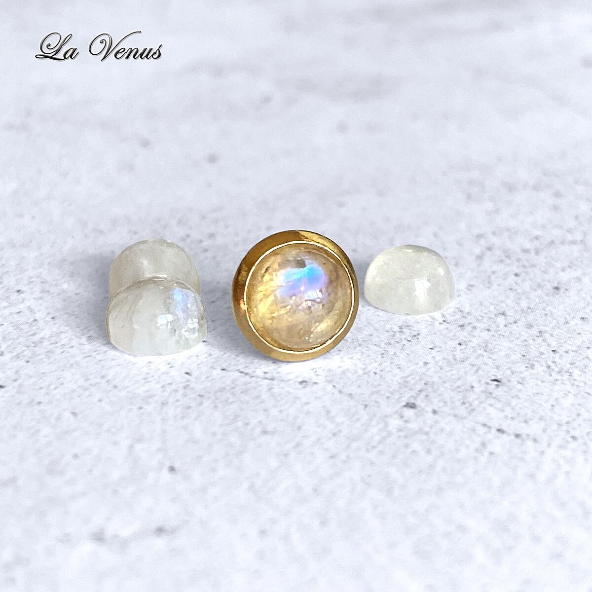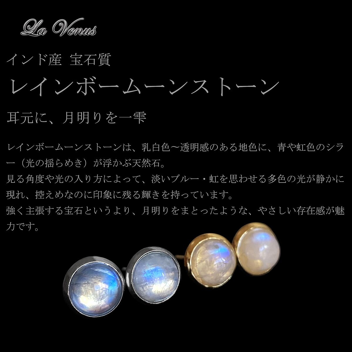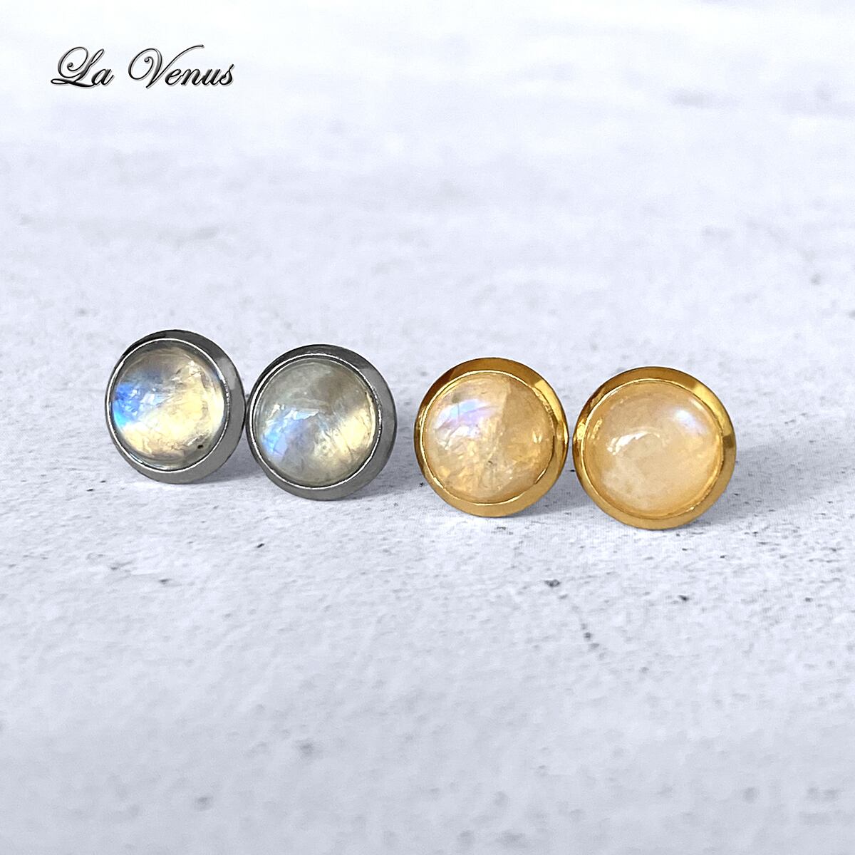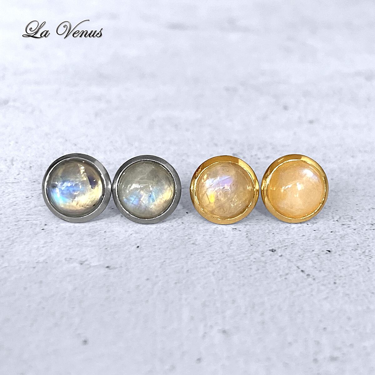 ✴︎月の雫✴︎ つけっぱなしOK 天然 レインボームーンストーン ベゼルピアス 大粒6mm SUS316 サージカルステンレス 台座 片耳用 金属アレルギー対策 覆輪 ゴールド シルバー