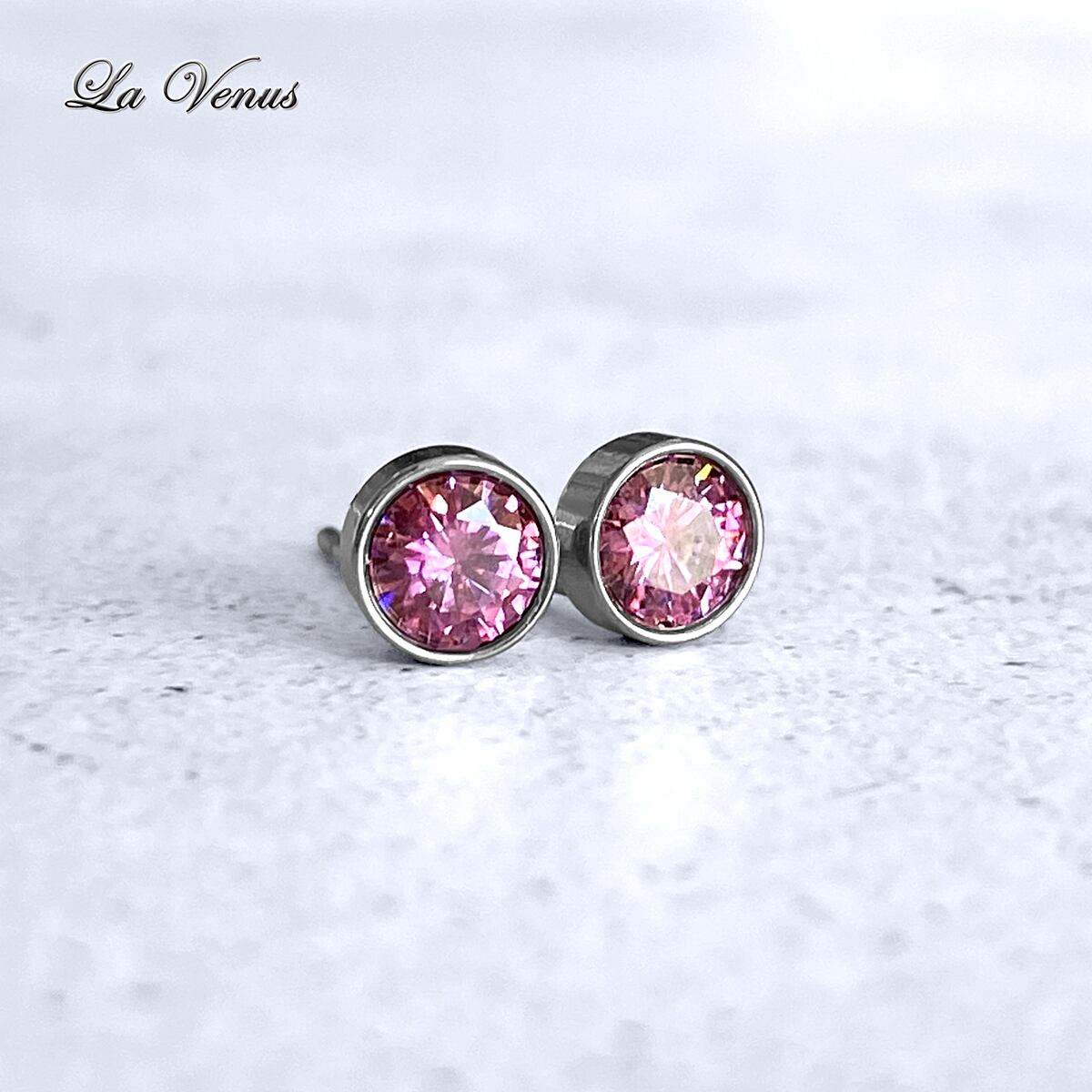 ✴︎月影に残る薔薇の光✴︎ つけっぱなしOK パープルピンク モアサナイト 一粒 ベゼルピアス 4mm 宝石質AAA 316 サージカルステンレス 片耳用 金属アレルギー対策【イヤリング変更可】