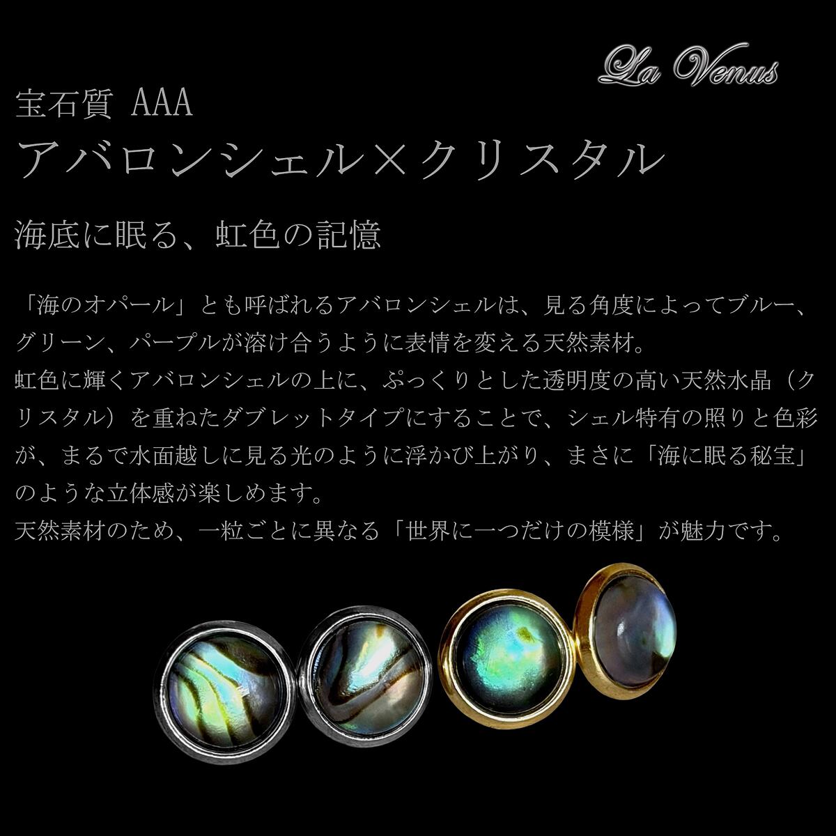 虹色に輝くアバロンシェルの上に、ぷっくりとした透明度の高い天然水晶(クリスタル)を重ねたダブレットタイプにすることで、シェル特有の照りと色彩が、まるで水面越しに見る光のように浮かび上がり、まさに「海に眠る秘宝」のような立体感が楽しめます。