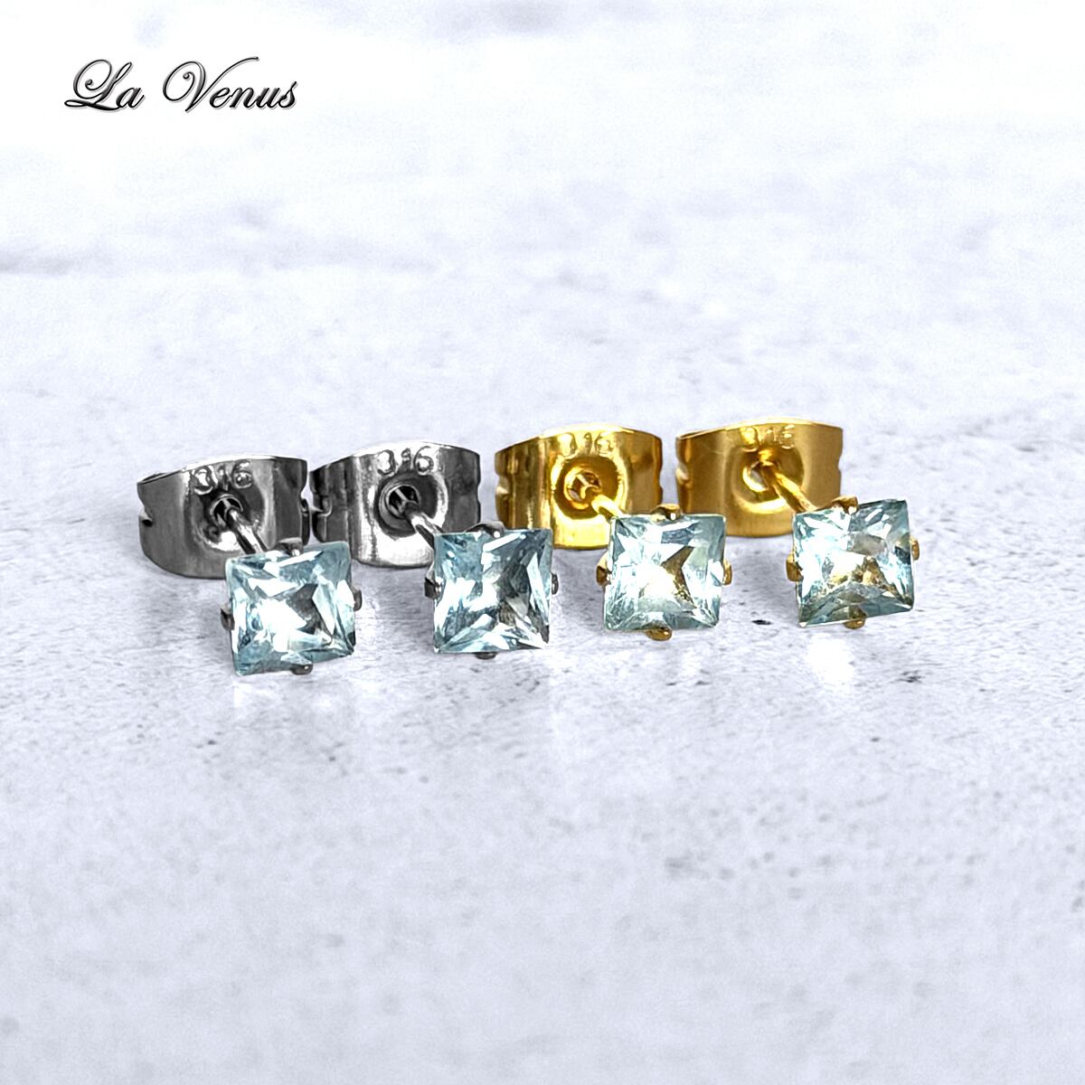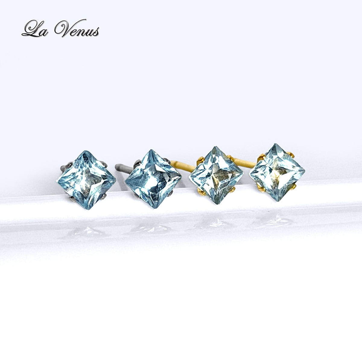 ✴︎蒼天の輝き✴︎ つけっぱなしOK ブラジル産 天然 スカイブルートパーズ 宝石質 AAA 一粒 プリンセスカット ピアス 4mm 316 両耳用 スタッド 11月誕生石【14KGF 変更可】