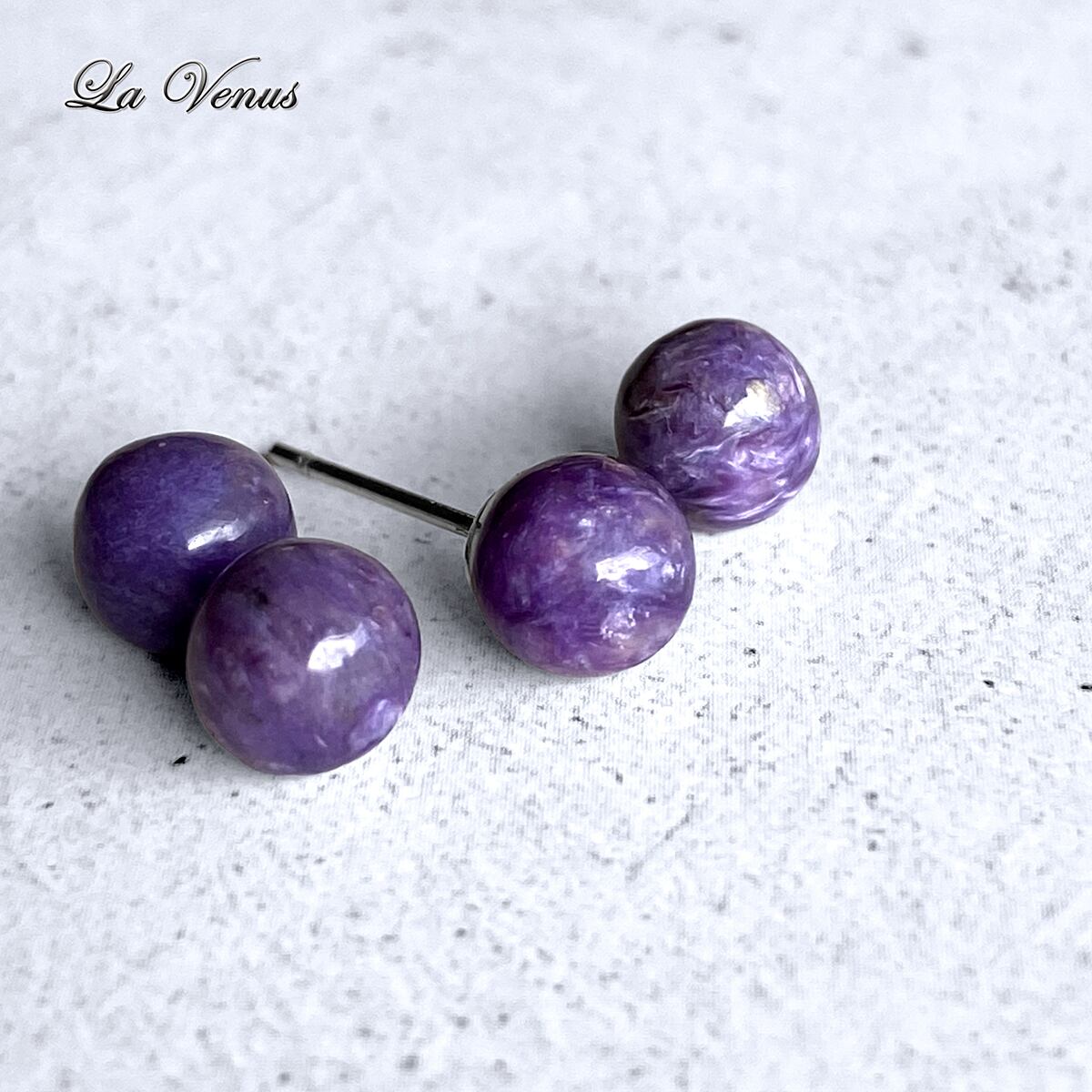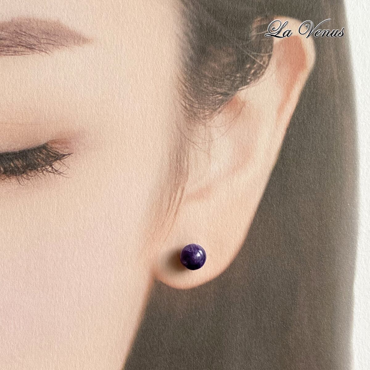 ✴︎紫の銀河✴︎ つけっぱなしOK 希少石 ロシア産 天然 チャロアイト 丸玉ピアス 大粒6mm SUS316 サージカルステンレス 両耳用 ペア 金属アレルギー対策 ゴールド シルバー