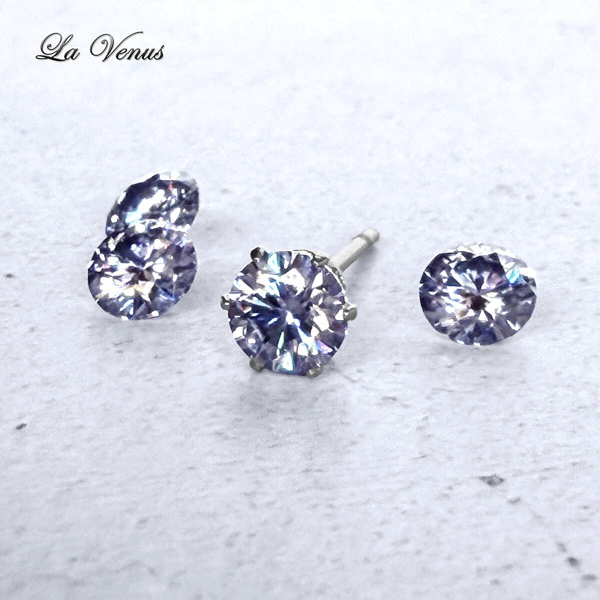 ✴︎夢紫の吐息✴︎ つけっぱなしOK 奇跡の宝石 ラベンダー モアサナイト 一粒 ピアス 4mm 宝石質 VVS1 316 サージカルステンレス 片耳用 スタッド【14KGF 変更可】