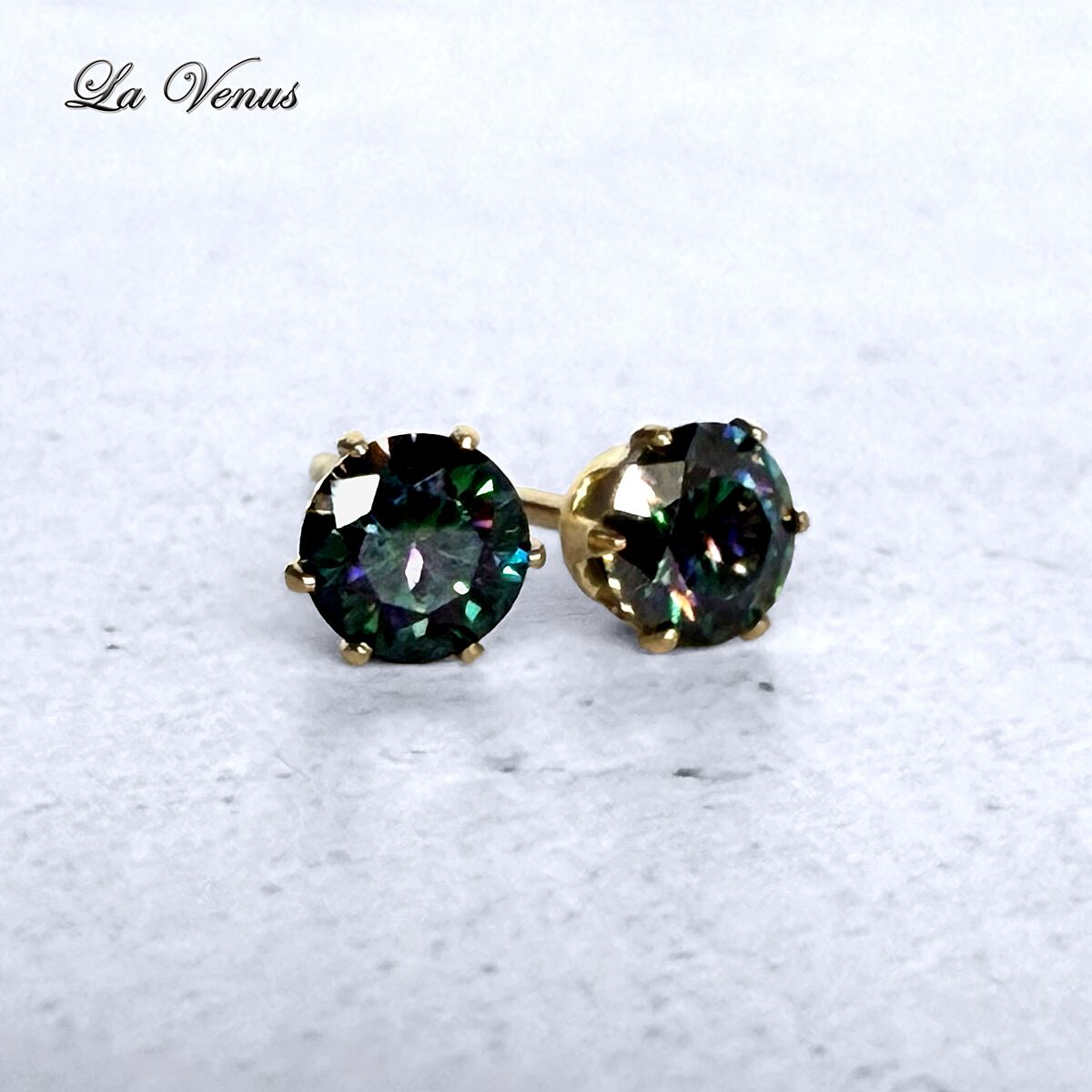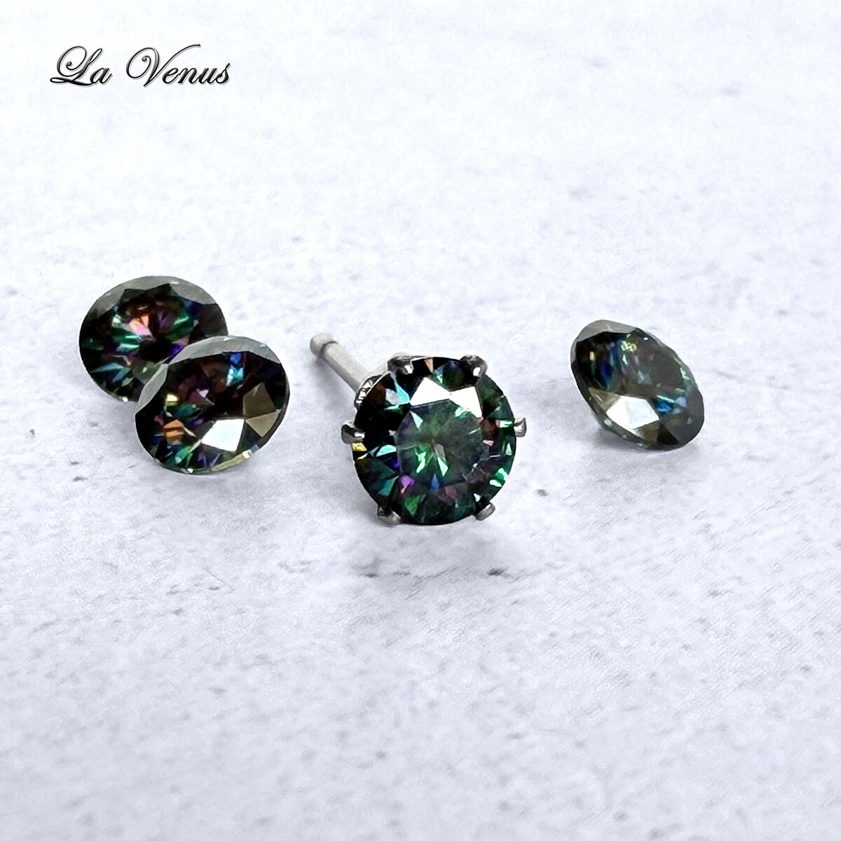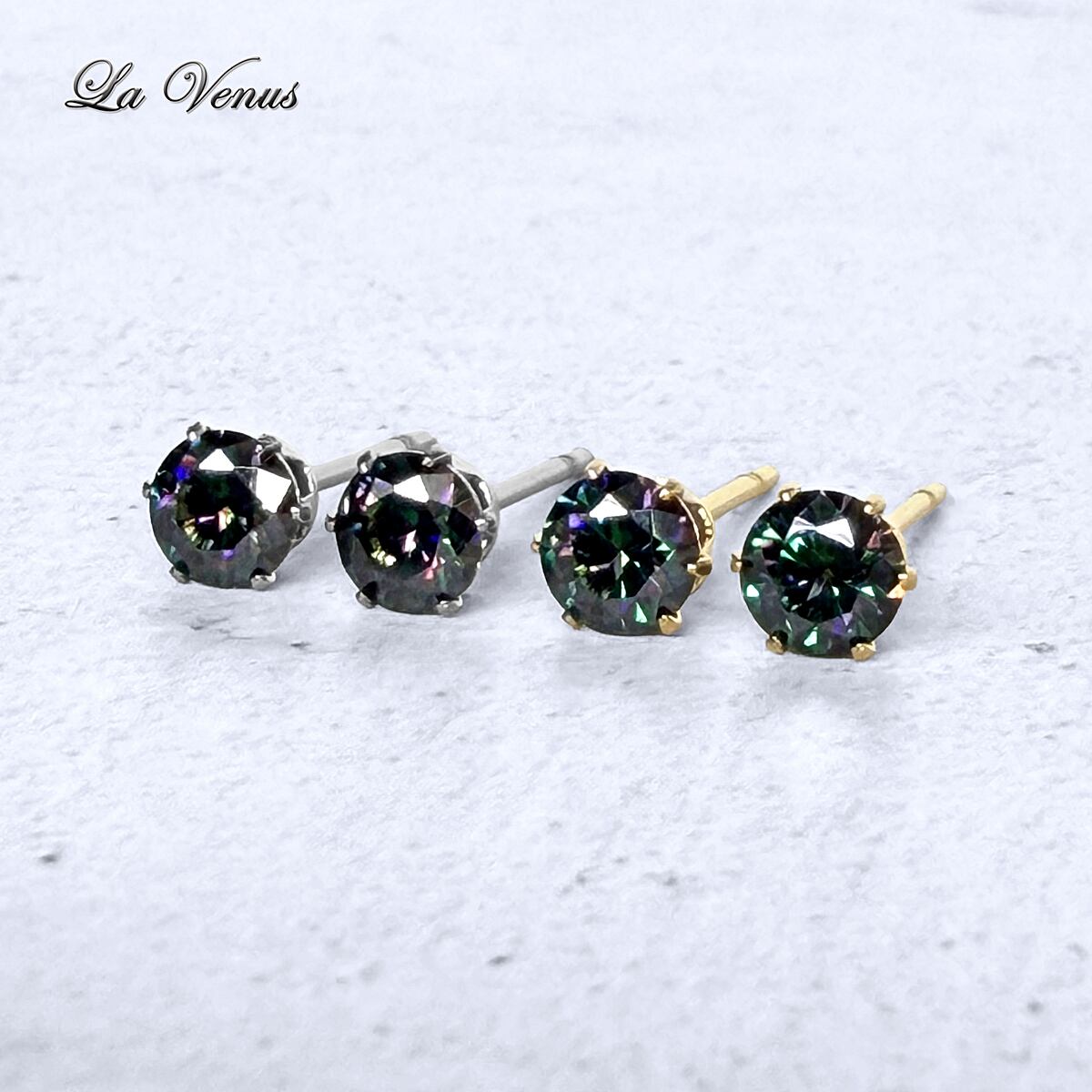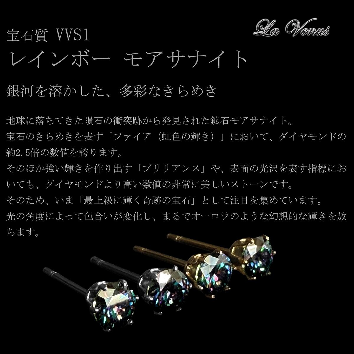 ✴︎極夜の妖精✴︎ つけっぱなしOK 奇跡の宝石 レインボー モアサナイト 一粒 ピアス 4mm 宝石質 VVS1 316 サージカルステンレス 片耳用 スタッド【14KGF 変更可】