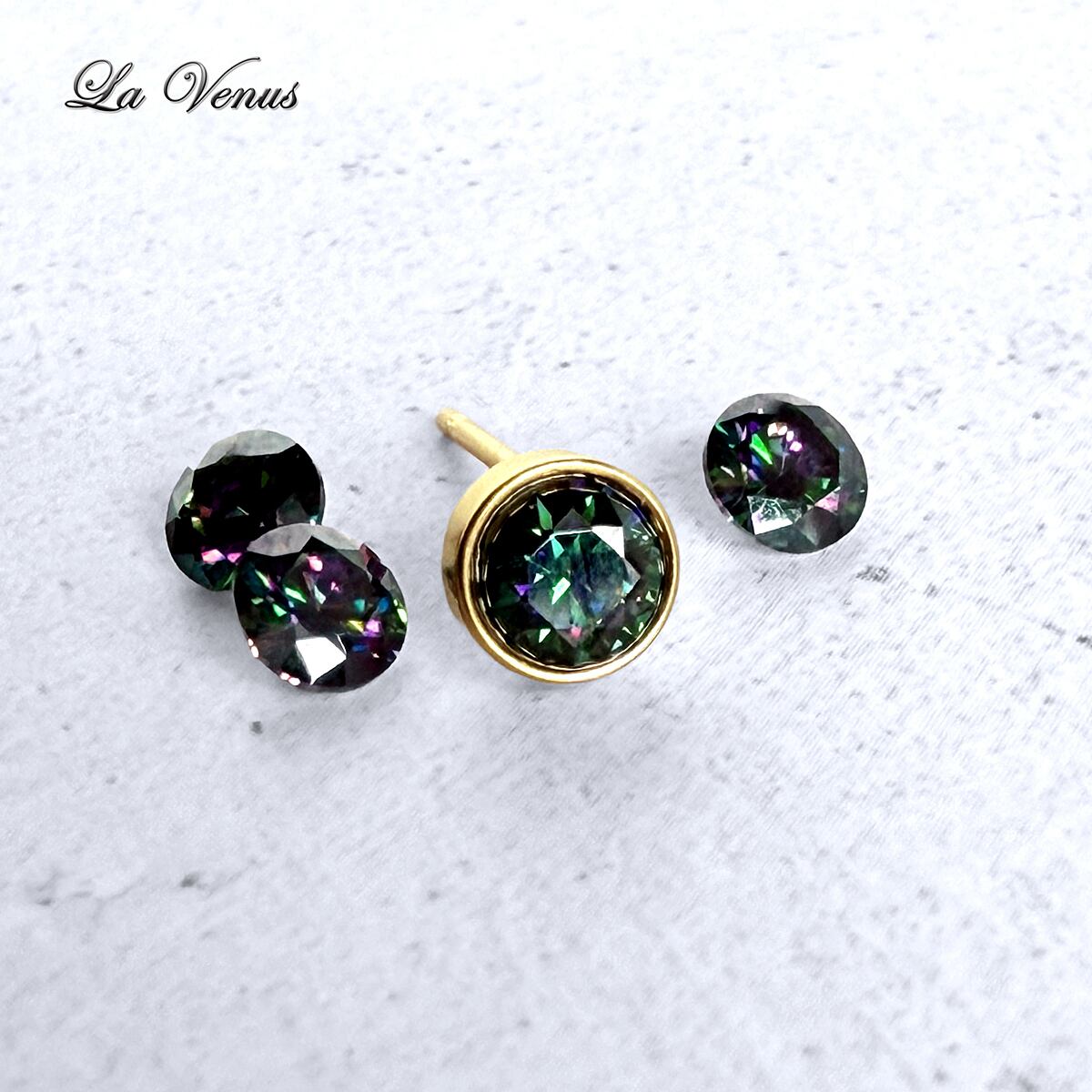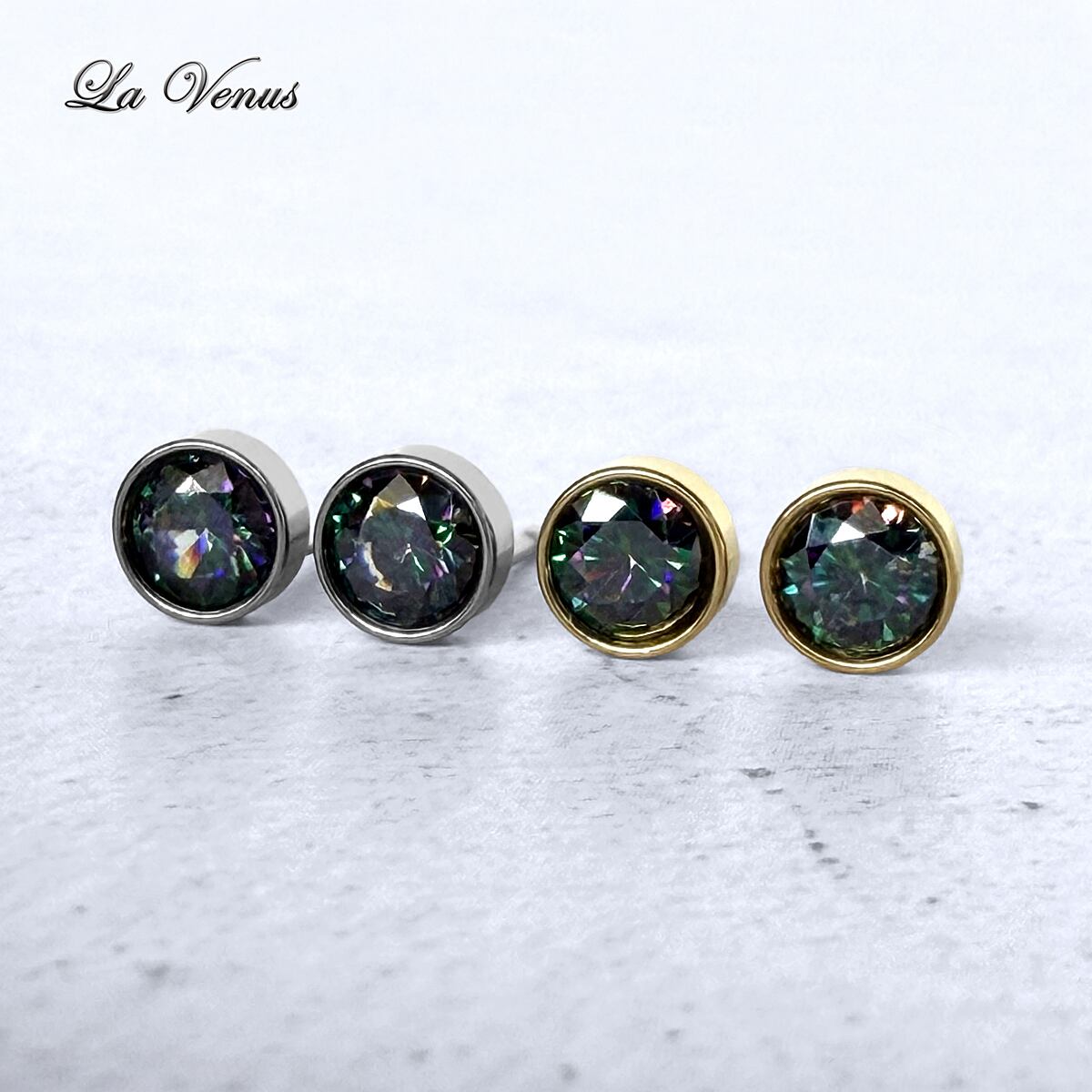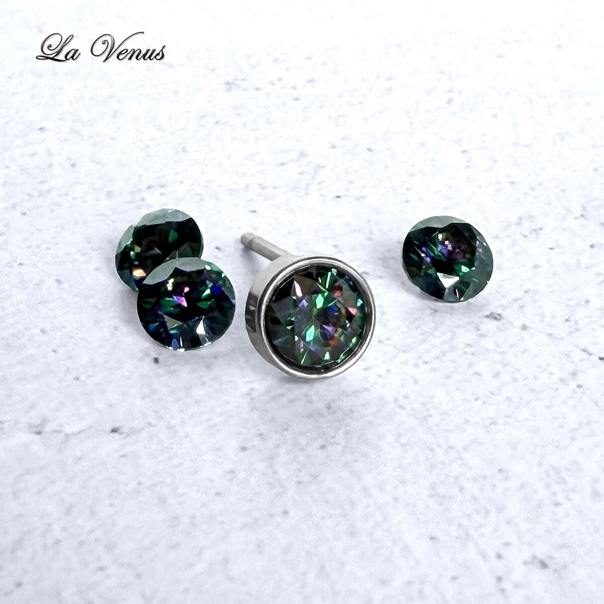 ✴︎極夜の妖精✴︎ つけっぱなしOK レインボー モアサナイト 一粒 ベゼルピアス 4mm 宝石質 VVS1 316 サージカルステンレス 両耳用 金属アレルギー対策【イヤリング変更可】